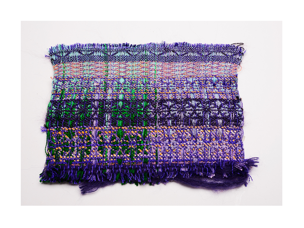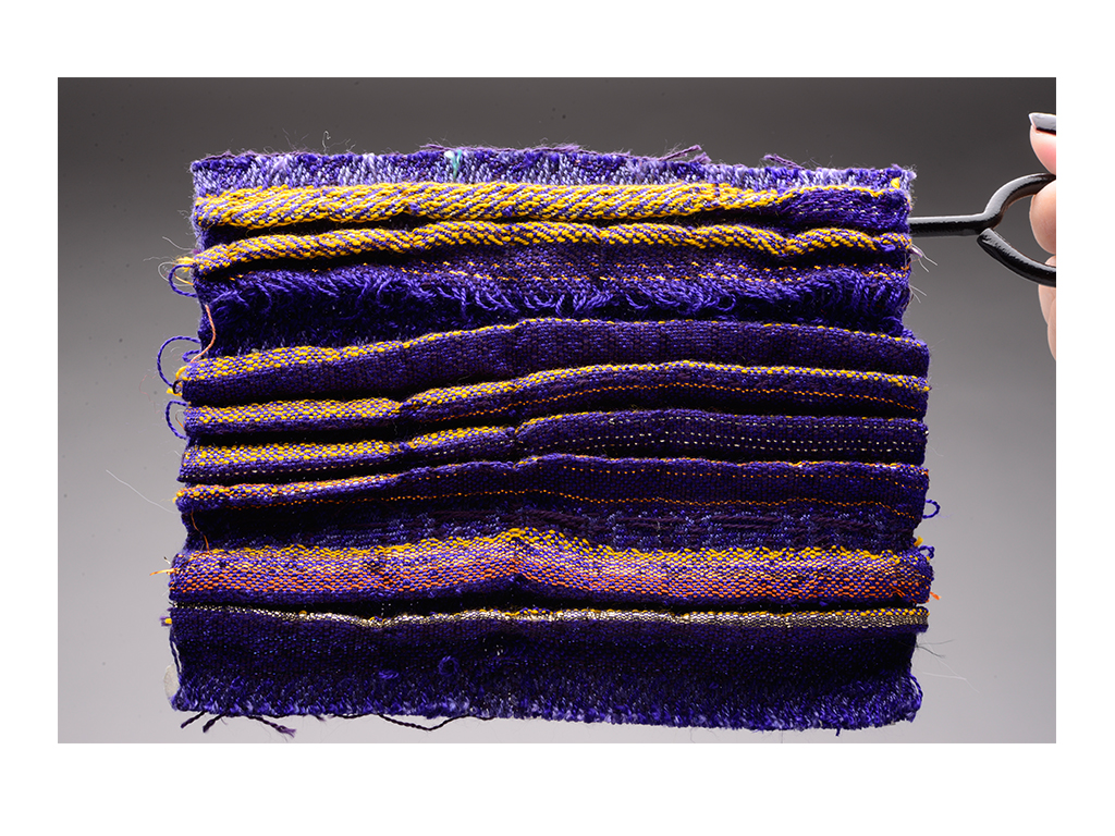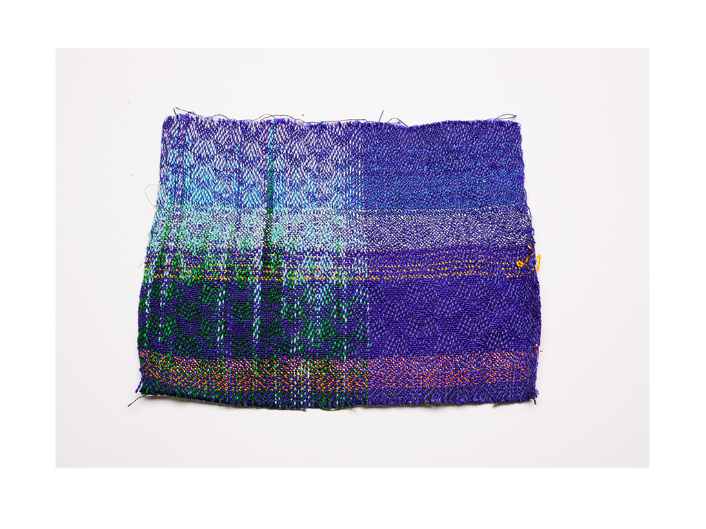 This project is about the colours. I was inspired by Tree of Codes designed by Wayne Mcgregor. The change of bright coloured light and the contrast vivid colours became my main colour palette. This is the first time I use both double cloth warp and dip dyed my warp as well. In terms of technique, I tried the pleats to show the flashes of light.